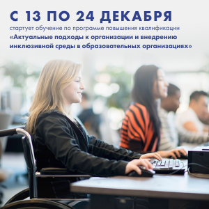 Стартует обучение для педагогических и управленческих кадров по программе повышения квалификации «Актуальные подходы к организации и внедрению инклюзивной среды в образовательных организациях»