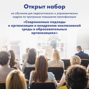 Открыт набор на обучение для педагогических и управленческих кадров по программе повышения квалификации «Современные подходы к организации и внедрению инклюзивной среды в образовательных организациях»
