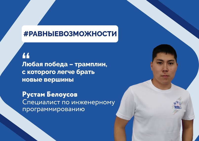 Несмотря на инвалидность третьей группы и заболевание опорно-двигательного аппарата, Рустам активный и талантливый парень. Во время обучения в техникуме был членом студенческого совета, участвовал в конкурсе профессионального мастерства для лиц с ограниченными возможностями здоровья «Абилимпикс». В 2020 году Рустам стал победителем регионального конкурса «Студент года», где во время подготовки и участия получил колоссальный опыт и массу приятных впечатлений. Более того Рустам на протяжении четырех лет являлся волонтером.
