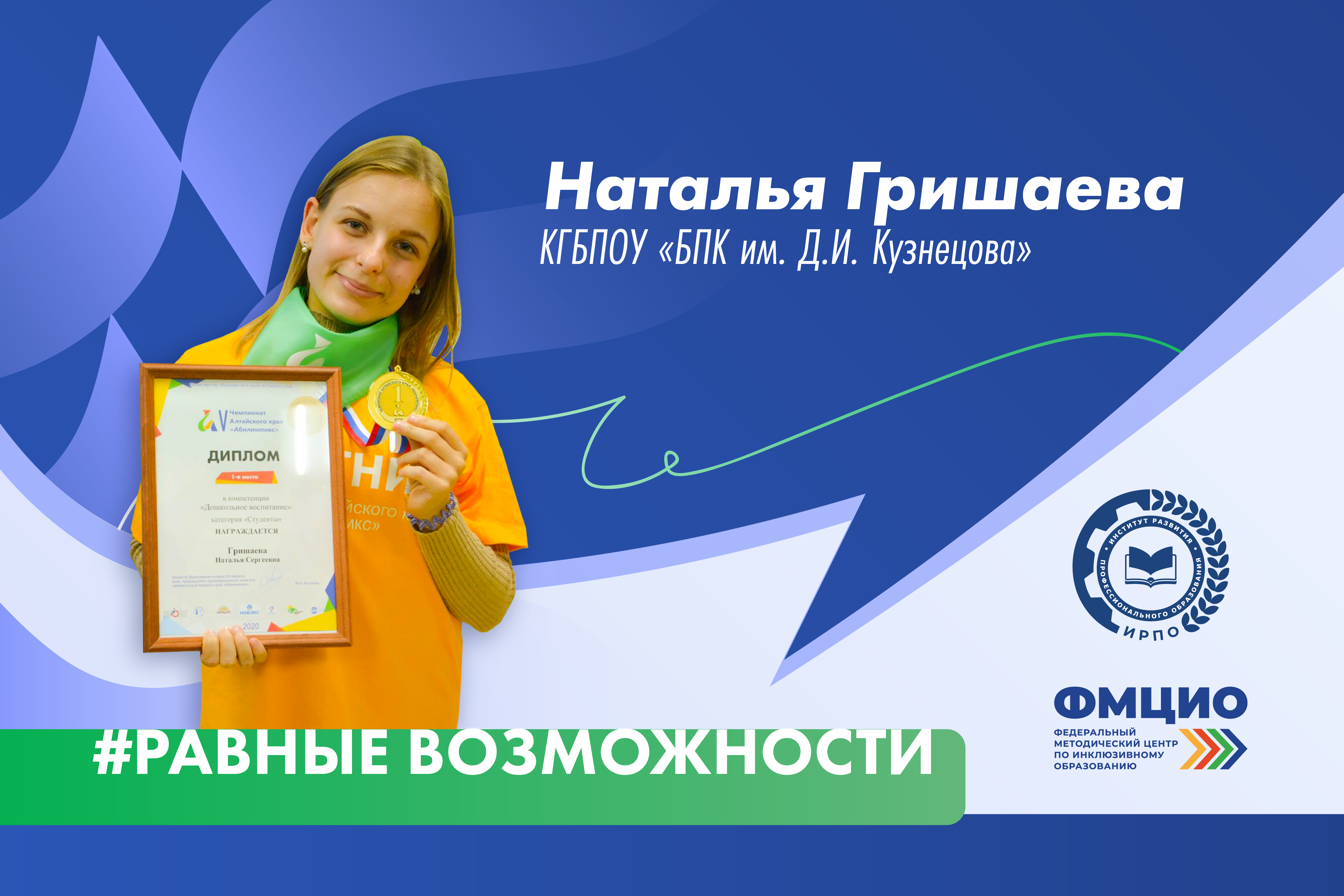 Победа в региональном чемпионате дала возможность Наталье представлять Алтайский край на VI Национальном чемпионате по профессиональному мастерству среди инвалидов и людей с ограниченными возможностями здоровья «Абилимпикс». Наталья достойно выступила на чемпионате, продемонстрировав свои знания, умения и навыки. Она блестяще справилась со всеми заданиями, проявив смекалку, креативность и знание современных методик. В итоге Наталья вошла в десятку призеров, став 8-й из 20-ти участников по компетенции «Дошкольное образование». Это результат упорного труда, целеустремленности и неугасающего желания постоянно совершенствоваться.