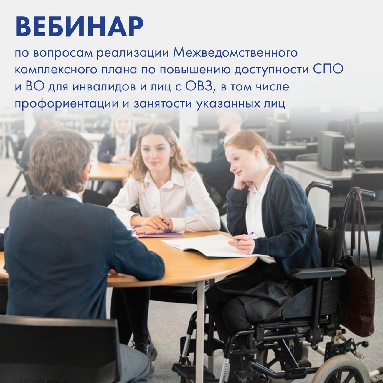 ФМЦИО приглашает принять участие в вебинаре по вопросам реализации Межведомственного комплексного плана по повышению доступности СПО и ВО для инвалидов и лиц с ОВЗ, в том числе профориентации и занятости указанных лиц